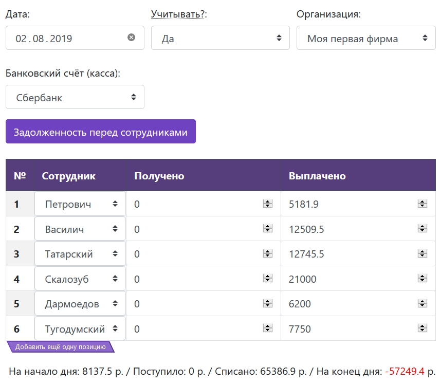 Документ похож на Платежи, но предназначен для отражения операций исключительно с сотрудниками вашей компании.