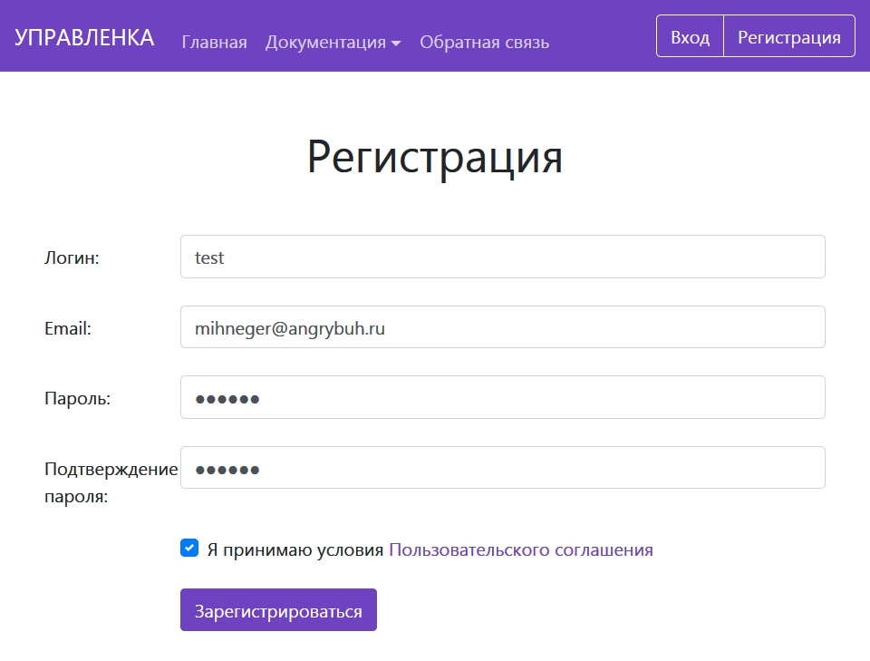 Обращаю ваше внимание, адрес электронной почты должен быть действительным и вы должны иметь к нему доступ! На указанный адрес придёт ссылка, при переходе по которой для вас будет автоматически сгенерирована база данных для ведения учёта. Без перехода по данной ссылке дальнейшая работа в приложении будет невозможна. Прошу отнестись к этой мере с пониманием, тратить ресурсы сервера на создание баз данных для фейковых пользователей не представляется рациональным.