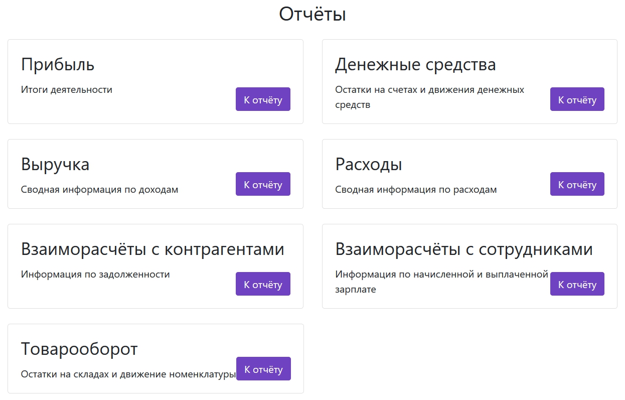 Доступные следующие отчёты: